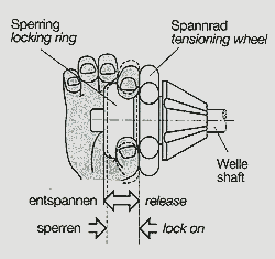 Uhing Easylock®配有一个夹紧环,该夹紧环根据轴向力或张紧力在与之啮合的轴上倾斜,从而增加了摩擦接触。张紧力越大,环的夹紧效果就越大。